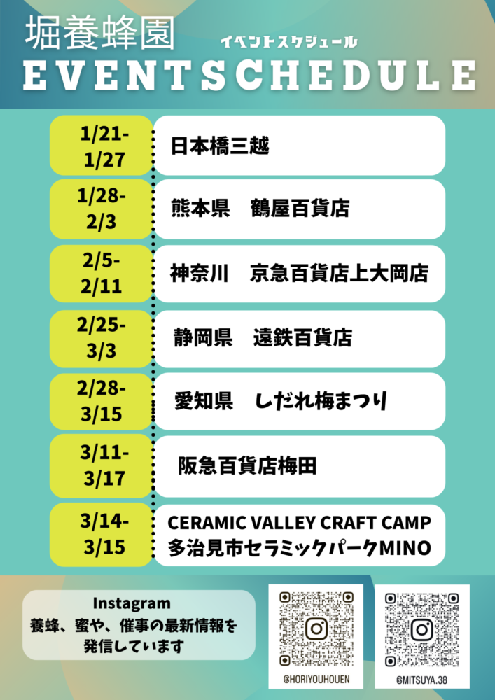 これ以降は採蜜が本格的に始まる為、しばらく催事はお休みとなります。